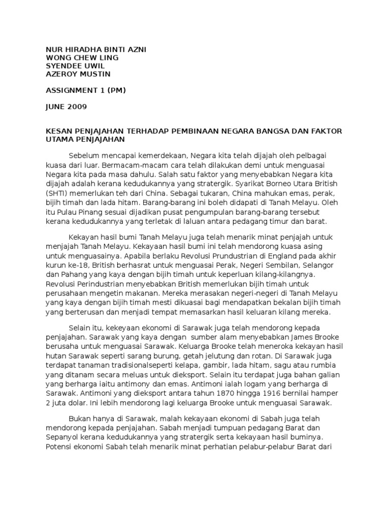 (3) mengembangkan rasa cinta kepada tanah air dan bangsa. Persamaan bidang persamaan bahasa x. Bagi masyarakat melayu tradisional, negeri bermaksud kawasan. Dalam memenuhi proses pembinaan negara bangsa brunei secara diplomasi menurut acuan pemikiran sultan omar ali saifuddien, nampaknya baginda telah berhadapan dengan berbagai cabaran dan asakan. Documents similar to kesan penjajahan terhadap pembinaan negara bangsa.