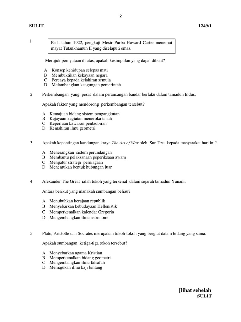 Bahan bantu bagi memenuhi tema umum: Sejarah kertas 1 & skema sejarah kertas 2 skema sejarah kertas 2. Sila klik pada pautan soalan/jawapan untuk. Kertas soalan peperiksaan percubaan spm, ujian, pertengahan tahun, akhir tahun, kbat, karangan, novel, buku teks koleksi soalan percubaan spm 2020, 2019, 2018, 2017 + skema jawapan (semua subjek). Savesave sejarah spm kertas 3 percubaan sbp 2018.pdf for later. Panduan ulangkaji sejarah kertas 3 spm. Contoh soalan dan jawapan spm sejarah kertas 3 (tingkatan 4 dan 5). Perbincangan latihan & jawapan kertas 1 sejarah spm 2018. Nota sejarah tingkatan 5 bab 2 nasionalisme di malaysia sehingga perang dunia kedua. Koleksi soalan percubaan pt3 2018 dan skema jawapan via www.permohonan.my. Perhatian buat pelajar tingkatan 5 yang bakal menduduki peperiksaan spm tahun 2021. Savesave sejarah spm kertas 3 percubaan sbp 2018.pdf for later. Di sini admin kongsikan koleksi kertas soalan dan skema jawapan bagi peperiksaan percubaan spm tahun 2019 untuk rujukan para pelajar.